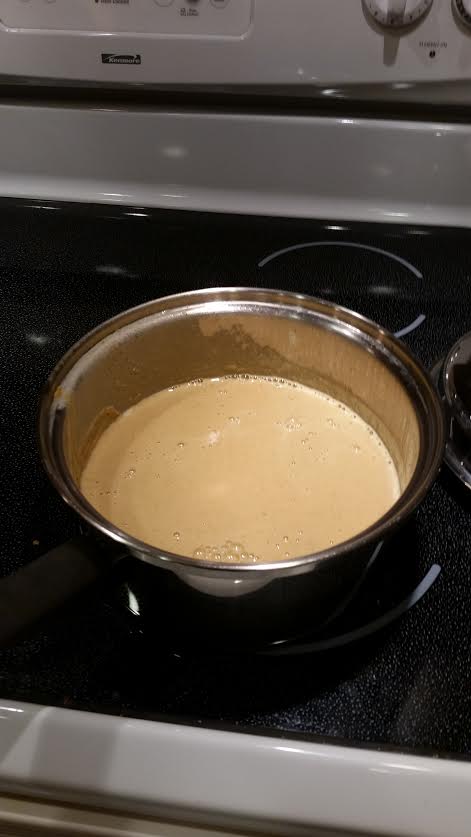 This recipe is super simple. Basically, you heat the pumpkin, spices, milk, cream, and bourbon in a pot, then later add the egg yolks.